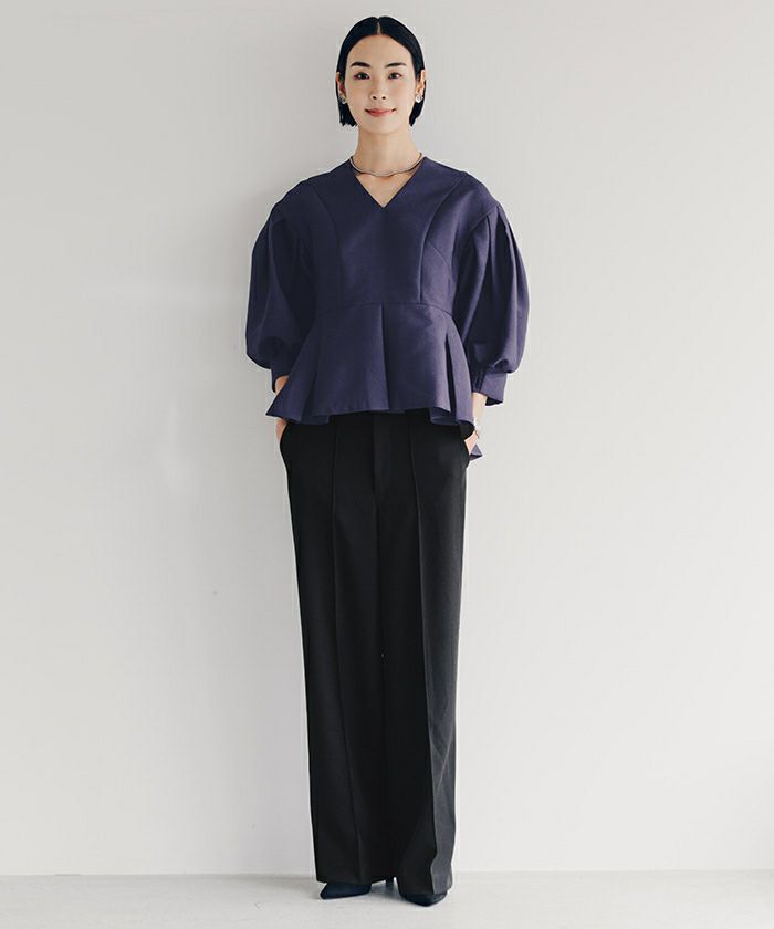 他の画像を見る ■【小林有里さんコラボアイテム】【高身長さん向けサイズ有り】【期間限定★SALE】 ピンタックセンタープレスワイドパンツ 定価 ¥ 7,689 のところ 価格 ¥ 5,766 税込 お気に入りに登録する